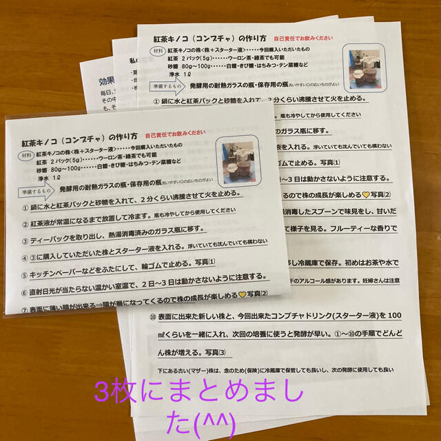 コンブチャクレンズ 作り方説明書4枚+新鮮な紅茶キノコ株+スターター液 の通販 by sakura5775's shopラクマ。