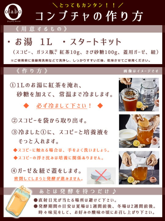 楽天市場 各種クーポン☆配布中!コンブチャ キット スターターキット スコビー スコービー 紅茶キノコ 紅茶きのこ マザー こんぶ茶 kombucha腸活 菌 菌株 培養 手作りキット 生酵素 乳酸菌 腸内フローラ 更年期 6点set○国産 コンブチャ スタートキット※ラッピング不可。