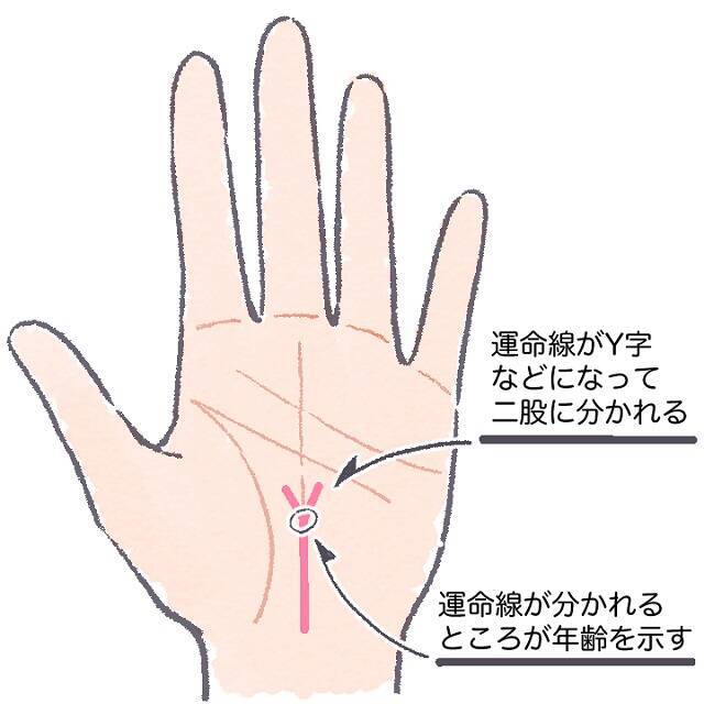 線が分かれた時期に幸福なことが訪れることを示す『運命線の先端の分かれ』とは!? 手相の教科書- ラブすぽ。