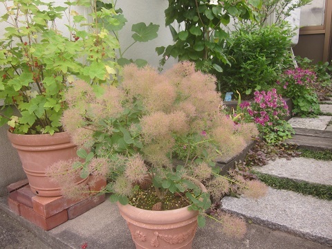スモークツリー、ヤングレディが満開です。マンション専用庭でのガーデニング。鉢植え中心の初心者ガーデナーブログです。