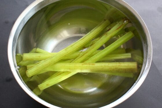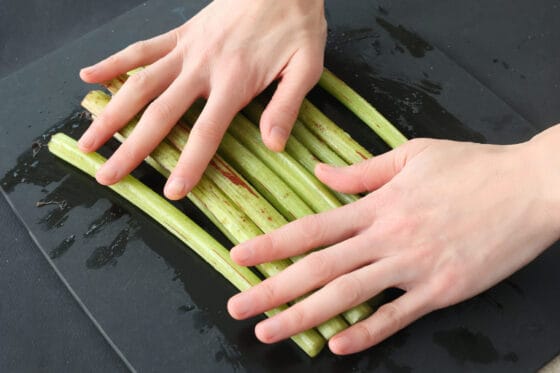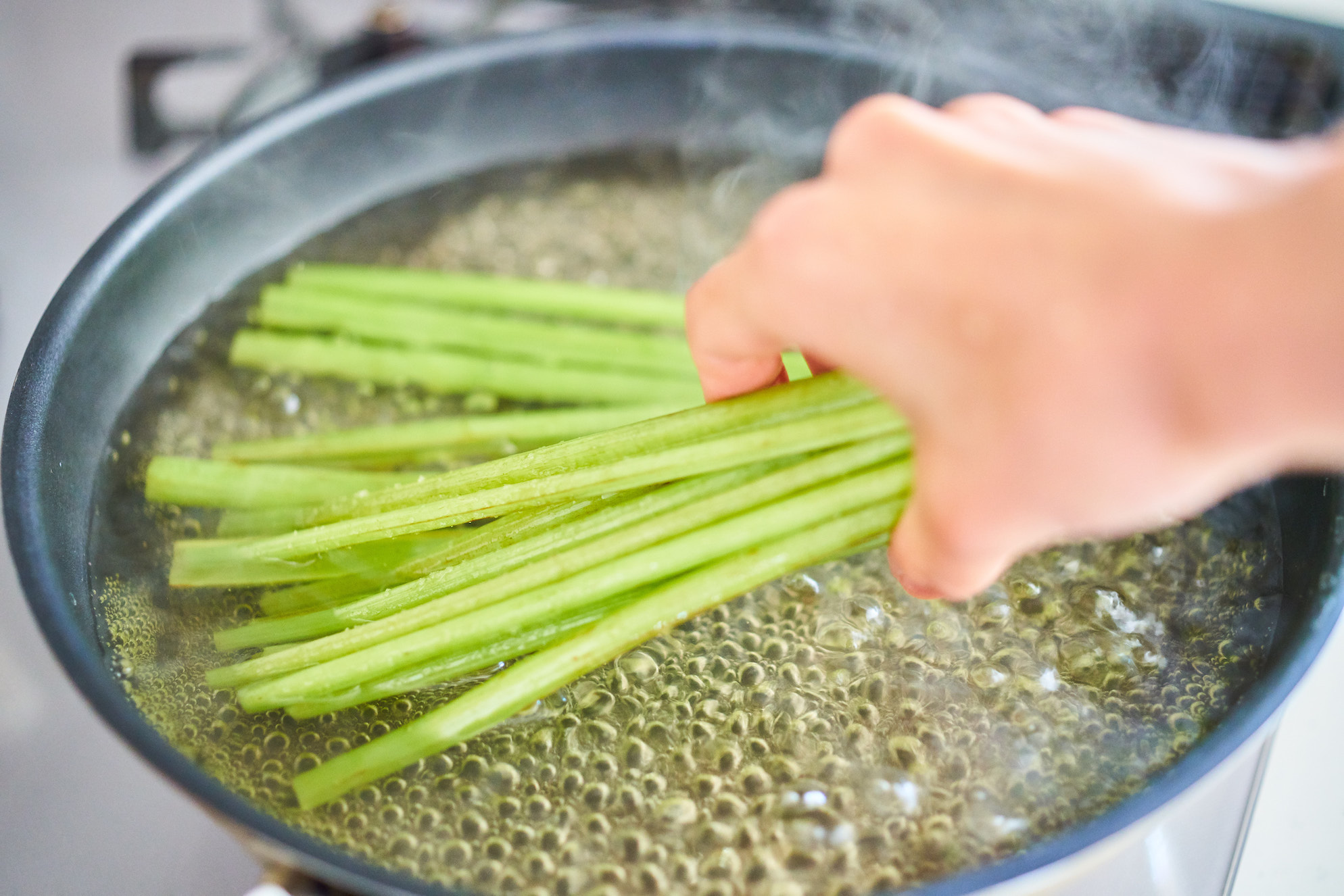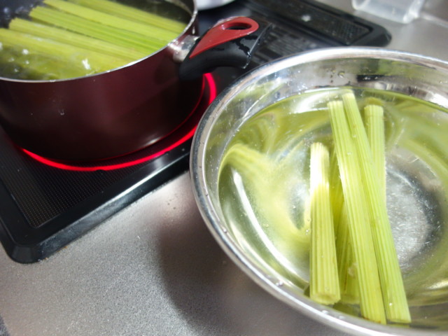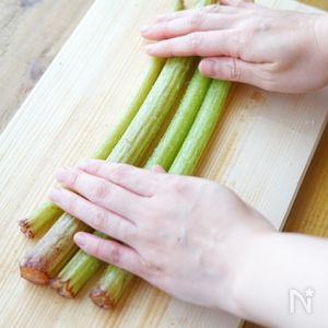 ふきの下処理ふきのアク抜きと茹で方・皮の剥き方N.D.Kitchen Basic。