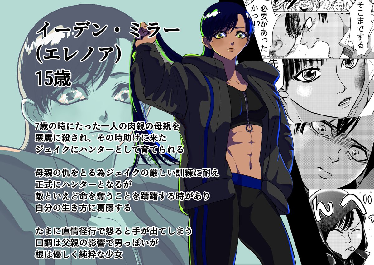1イーデン·ミラー 創作マンガBlackHoodの主人公。褐色、筋ムー 七星 @固ツイに16話マンガ さんのマンガツイコミ 仮。