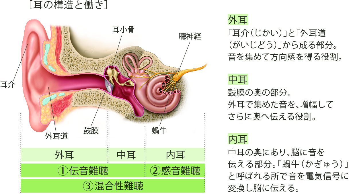 耳の構造 聴覚機能と平衡機能を担う外耳・中耳・内耳について解説 - ファミリー補聴器青梅の補聴器専門店。