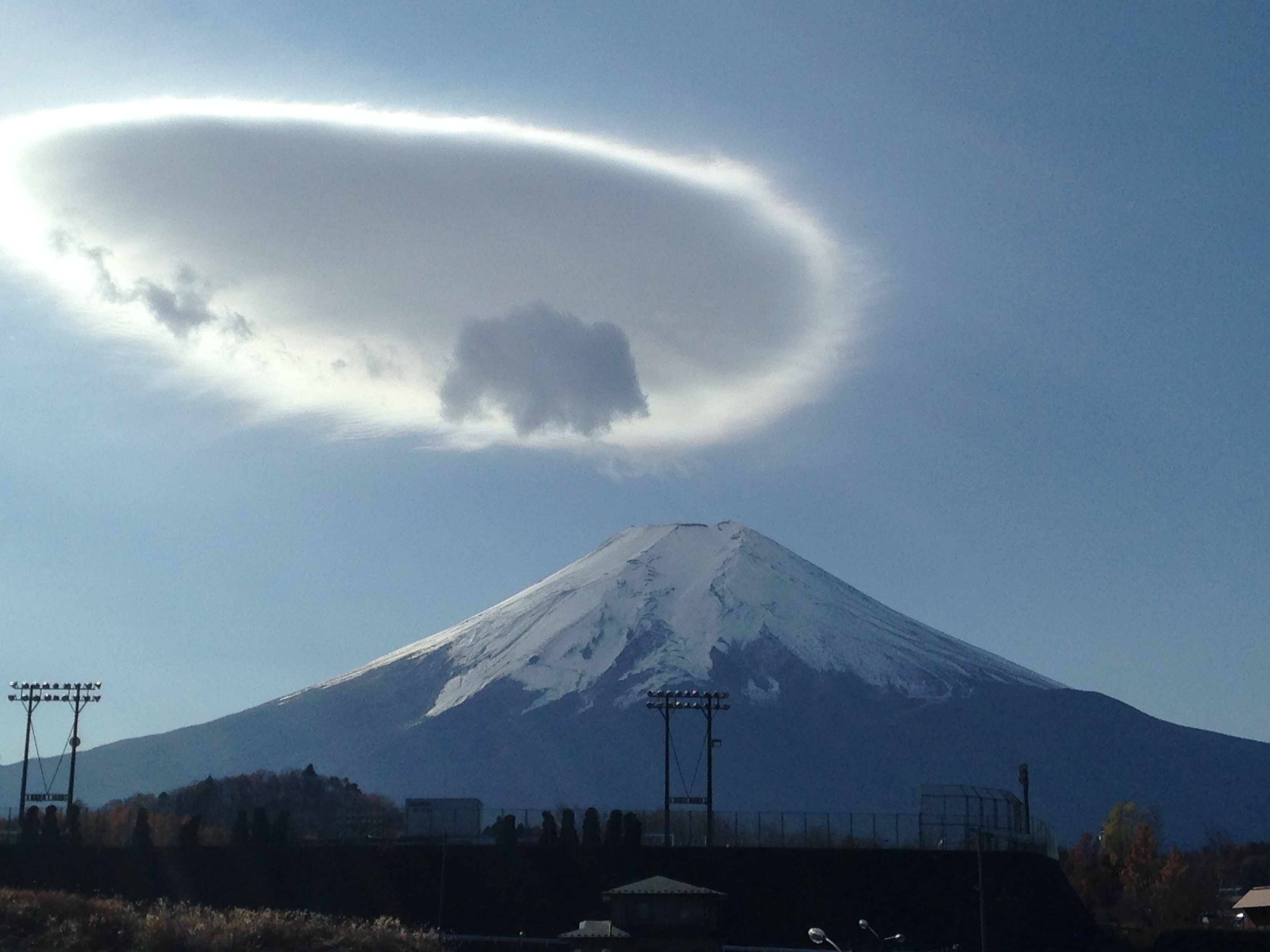 富士山の上に巨大な笠雲 山頂は真っ白に雪化粧毎日新聞。