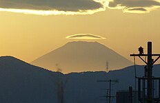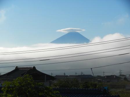 今朝は富士山に笠雲やつるし雲が出現 天気下り坂を示唆。