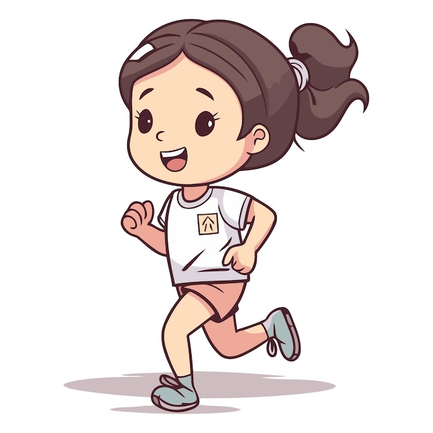 ランニングガールアニメのベクトルイラスト可愛い小さな女の子がジョギングをしていますPremium AI生成ベクトル画像。