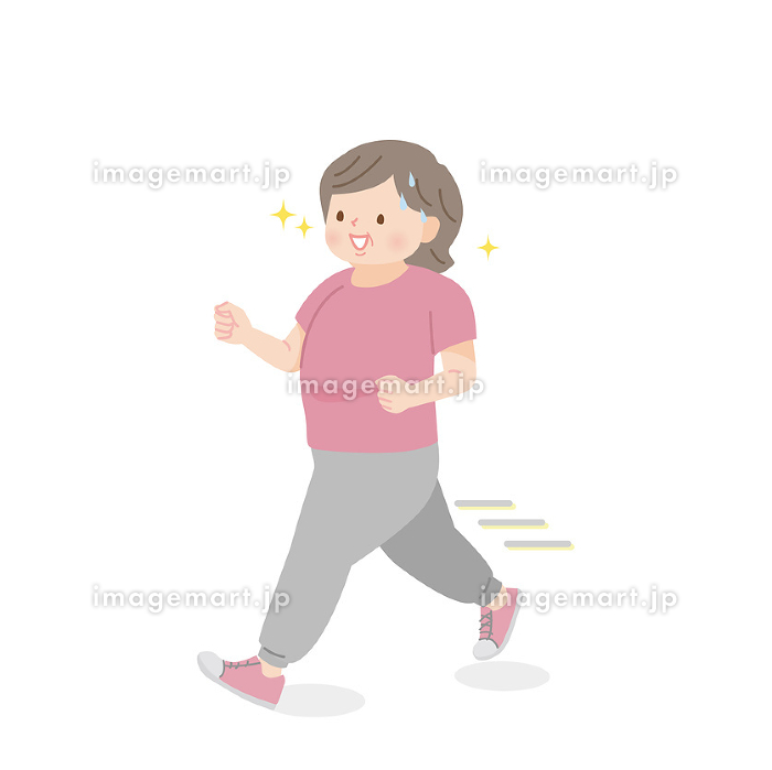 ランニングをする太った中年女性のイラスト素材290701761 毎月1点無料 フリー のストックフォト イメージマート。