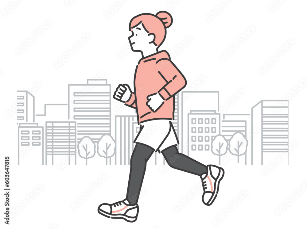 街中でランニングをする女性のベクターイラスト素材 運動 ジョギング Stock VectorAdobe Stock。
