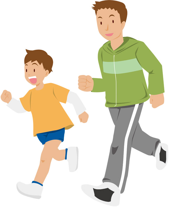 フリーイラスト一緒にジョギングする父と息子パブリックドメインQ:著作権フリー画像素材集。