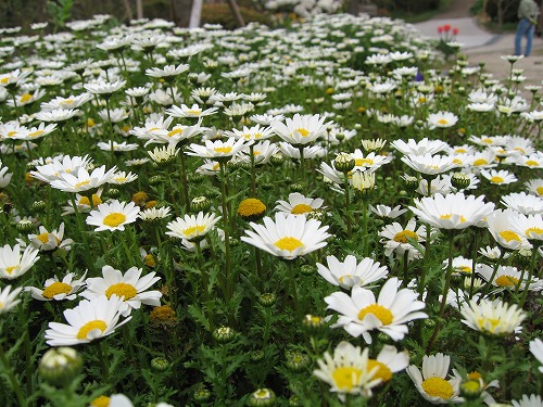 木春菊 モクシュンギク 寒い風が強〜い道端で、揺れながら咲いてました。 頑張ってるね〜。 学名:Argyranthemumfrutescens、キク科の半耐寒性多年草、別名;マーガレット。