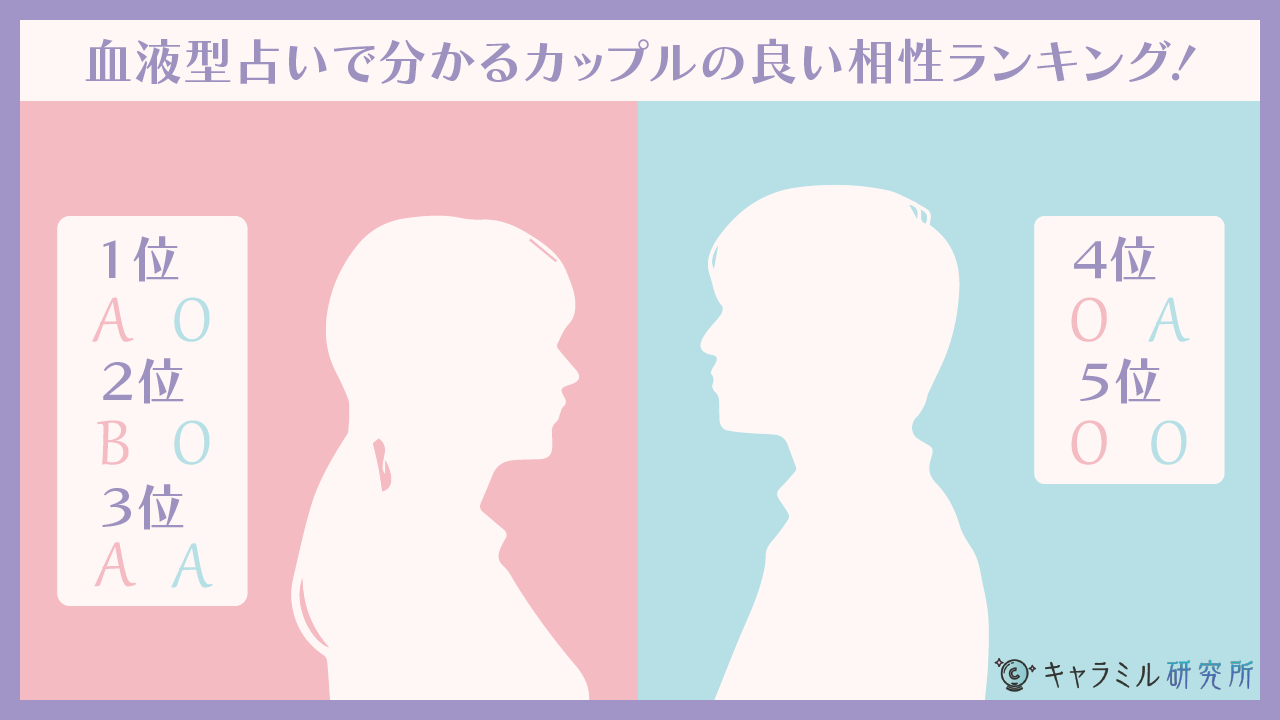 占いTVニュース血液型 2020年夏恋カップル相性ランキング . 2020年、相性のいい血液型カップルをランキング!1位~16位までをドドーンと発表します!! 好きな人と思うように会えない、出会いを探しに行きたいけれどままならないそんなあなたに、この夏の恋の行方。