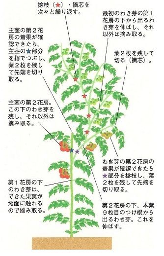 トマト わき芽かき・摘心の方法トマトの育て方.com。