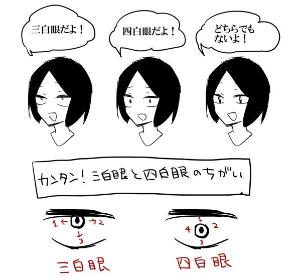 鴉丸 on X: "三白眼キャラ可愛いよな。という深夜3時の会話で、20年オタクやってきて今更三白眼の意味を理解した猿 "三白眼 "だと思ってたキャラが実は"四白眼"というものだったことに衝撃を受けてた。 もしかして皆知ってた?? https:t.co g2ZheFA3z3"X。