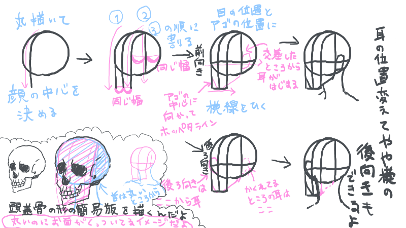 比率のバランスから学ぼう! 斜め顔と斜め後ろから見た顔の描き方いちあっぷ。