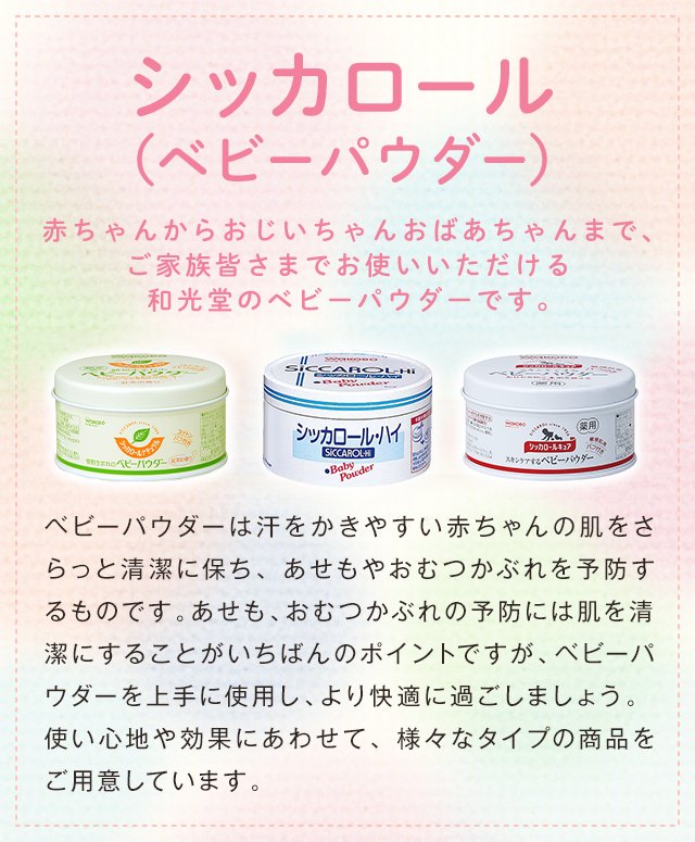 シッカロール和光堂 離乳食、粉ミルク、ベビーフード、スキンケア用品。