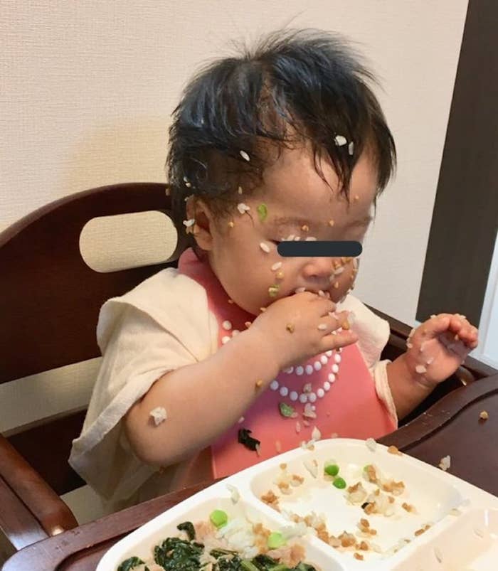 やられた〜!納豆ご飯を手づかみで食べる赤ちゃんの姿にメロメロ。