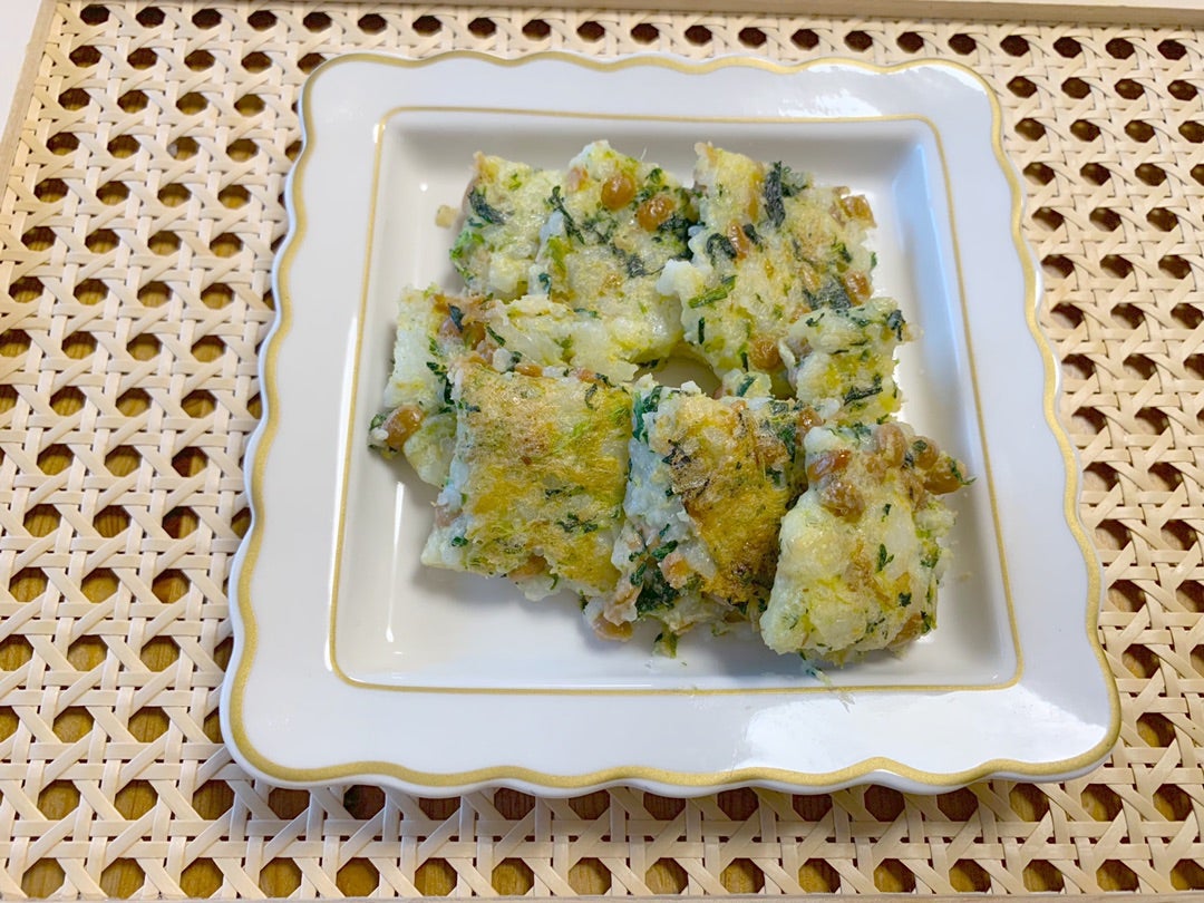 パパっと作れる離乳食♡納豆と卵のふわふわ焼きレシピ。