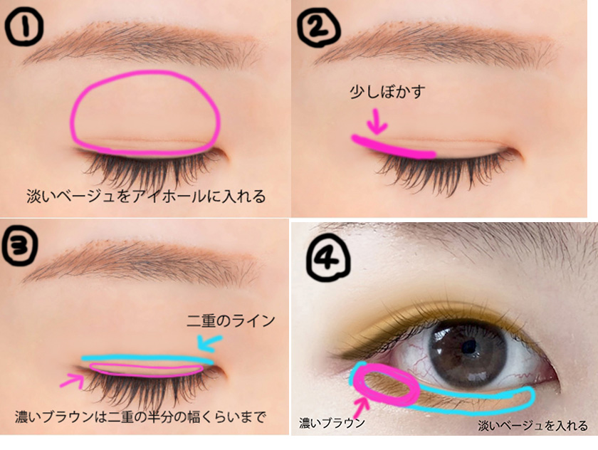 末広二重から平行二重への自然な変化方法とメイクテクニック。