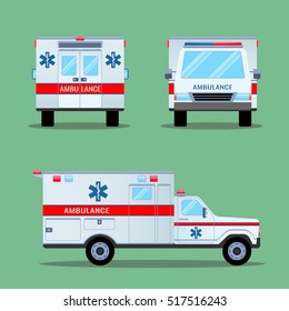 救急車の緊急アイコン。背面、正面、側面図。救急車の輸送。救急車救急救命自動車。質の高い救急車を平らなスタイルに。ベクターイラスト」のベクター画像素材 ロイヤリティフリー517516243Shutterstock。