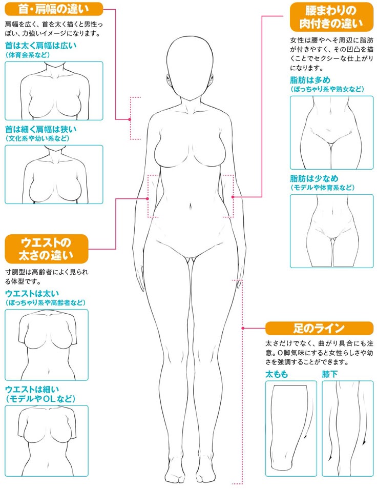 キャラクターの描き分け STEP.6 男女の身体 ペンタブ練習イラスト・マンガ描き方ナビ。