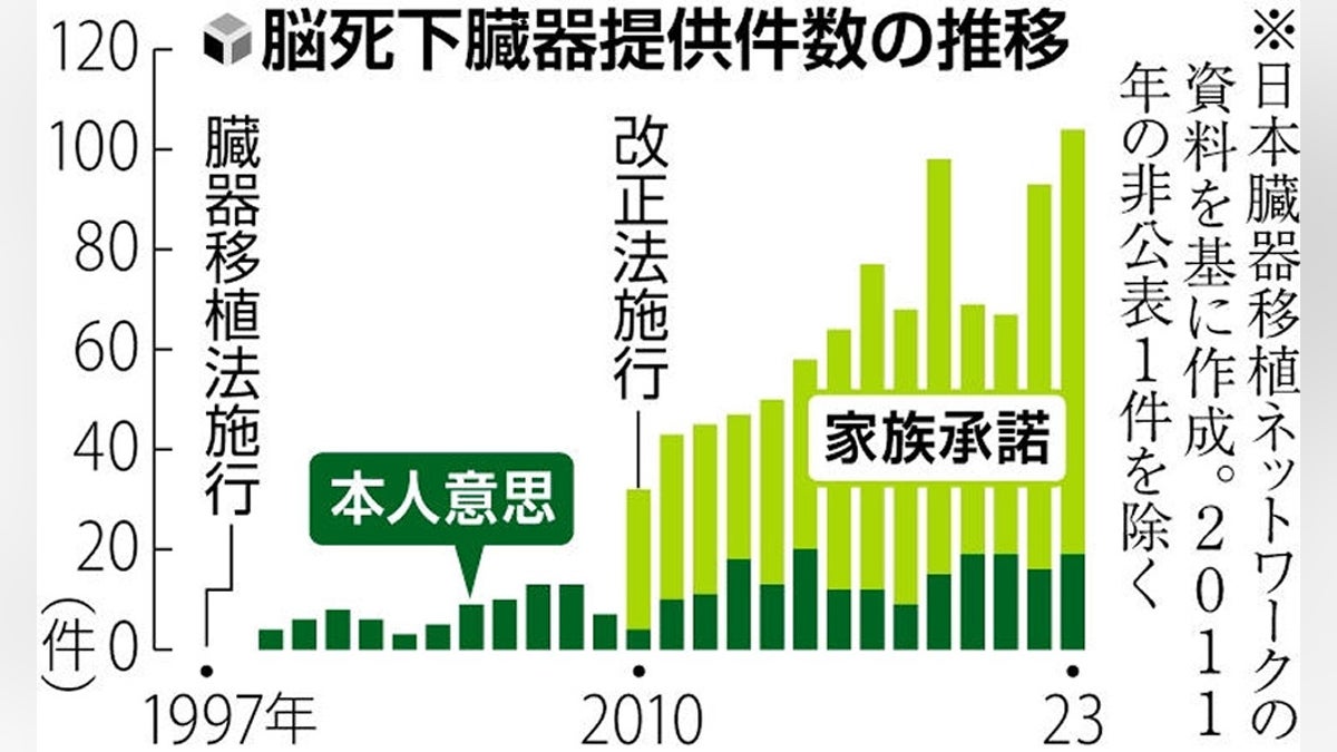 脳死臓器提供1000例目は60代男性 法施行から26年、欧米と比べドナー少なく : 読売新聞。