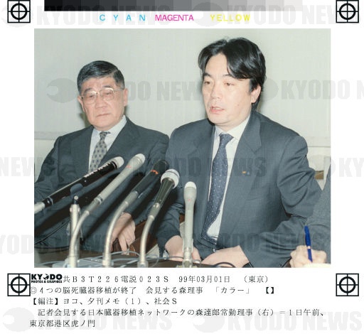 会見する森理事 4つの脳死臓器移植が終了コード 1999030100027 の写真・画像:報道写真・ニュース映像の提供購入サービス:KYODONEWS IMAGELINK イメージリンク。