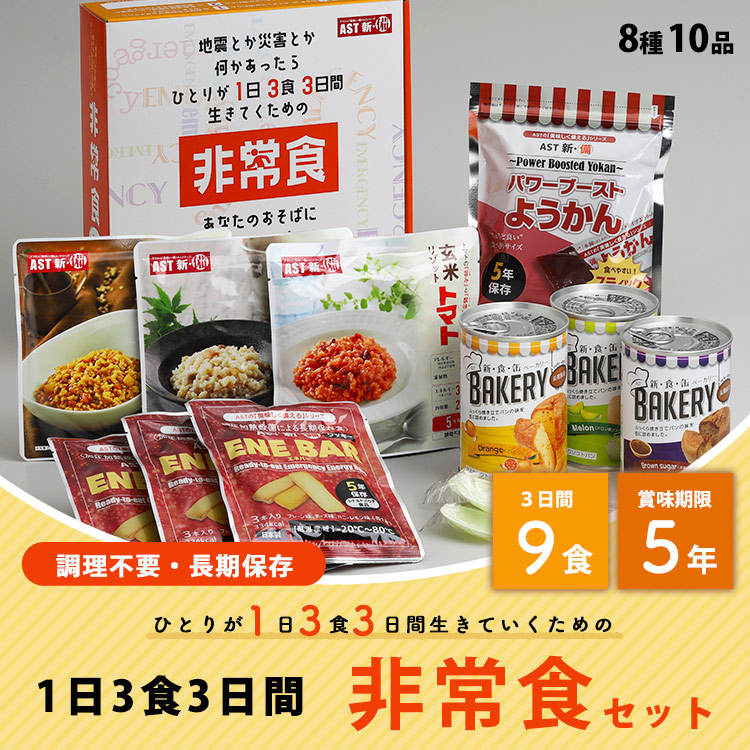 非常食セット アスト 新・備非常食 1日3食3日間セット 5年保存 9食 防災 非常食 保存食 備蓄食 長期保存 オフィス 賞味期限2031年1月迄あんしんの殿堂防災館。