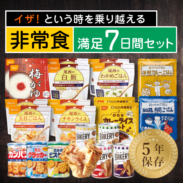 5年保存の非常食セット 7日分18種類21品をセットにした 非常食7日間基本セット災害食 防災食 防災セットにも防災のサイボウ楽天市場店。