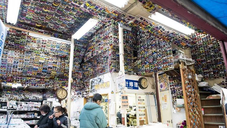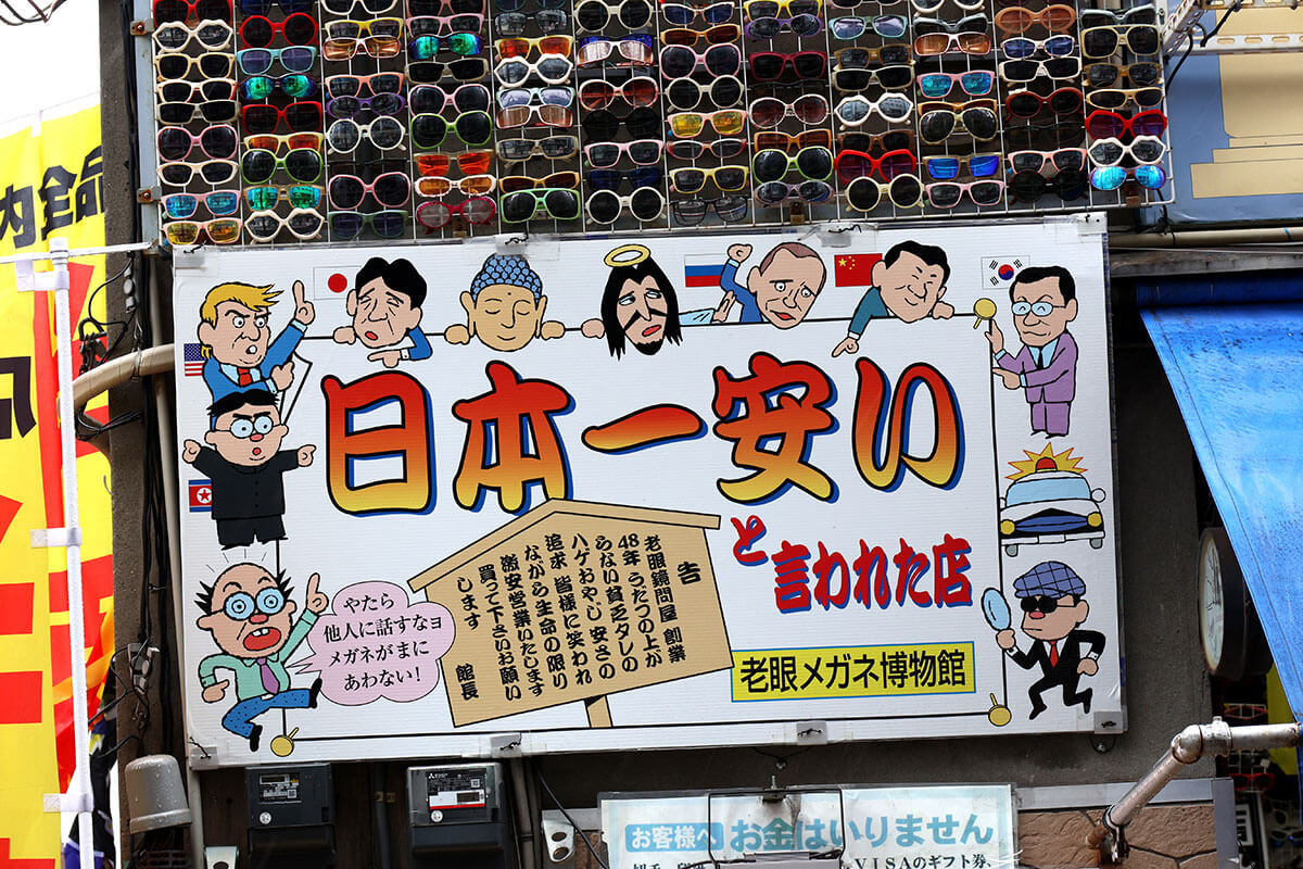 東京別視点ガイド 株式会社 別視点 on X: "「老眼めがね博物館」は、老眼鏡とサングラスを激安販売している池袋のメガネ屋さんだ。壁に天井にサングラス1万本が隙間なく貼りつけられている、異様な内装。 この店、なにが凄いって、とにかく安い。尋常じゃなく安い。