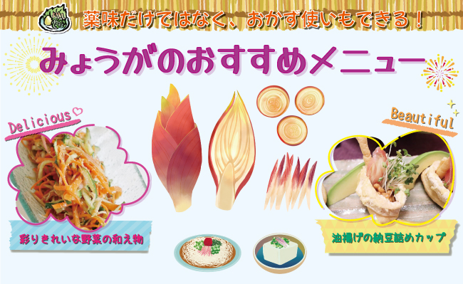 薬味だけではなく、おかず使いもできる!みょうがのおすすめメニュー食宣伝。