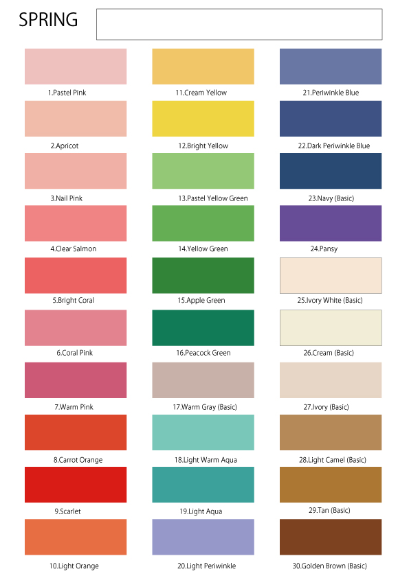 16タイプパーソナルカラー診断 Spring 春・スプリング 編顔映えする似合う色を詳しく解説 - Yasu Hair Designer色使いのテクニックや診断内容を発信恵比寿のパーソナルカラー診断ならyasu-hair designer。