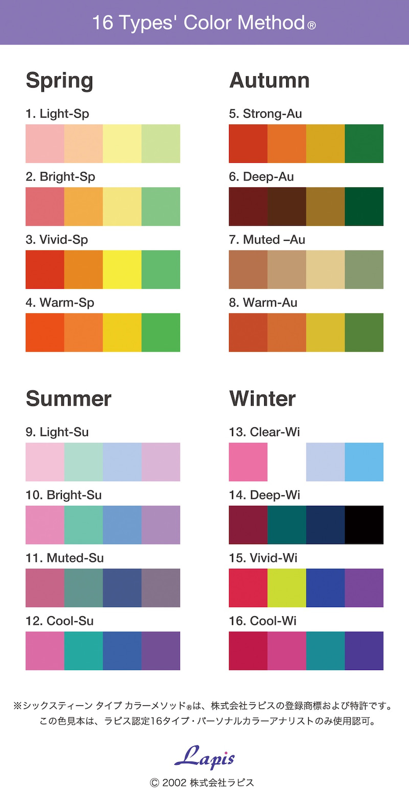 パーソナルカラー診断 4シーズン 16タイプ分類 についてsalon Laule'a サロンラウレア。