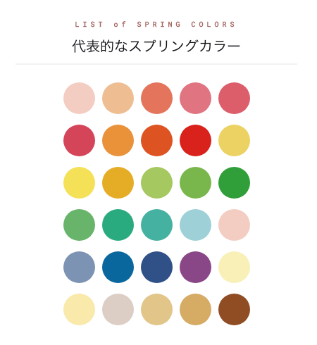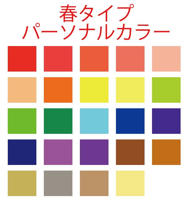 パーソナルカラーのスプリング 春 の色見本です。パーソナルカラー診断のスウォッチや教材としてご利用ください。愛知県 パーソナルカラーのルシールカラ。