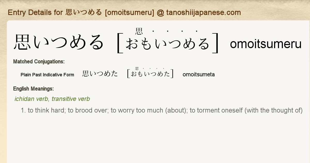 思い詰める, 思いつめる, おもいつめる, omoitsumeru - Nihongo Master。