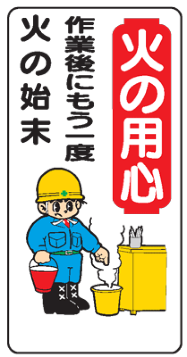 イラスト標識:火の用心 作業後にもう一度火の始末 WB47まんが標識 看板 表示 プレート マーク サイン現場の安全標識・保安用品。