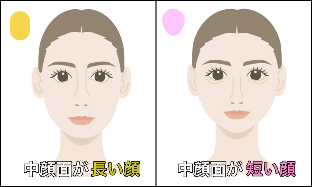 あなたはどのタイプ?「面長」=「中顔面が長い」と思われがちですが 実は、面長さんには3つのタイプがあります🙌🏻 1️⃣ おでこ 2️⃣ 中顔面3️⃣ あご 1️⃣ 6cm 2️⃣ 6.5cm 3️⃣ 6.5cm これが平均くらいの長さです! この数字と比べて一番離れているものが。