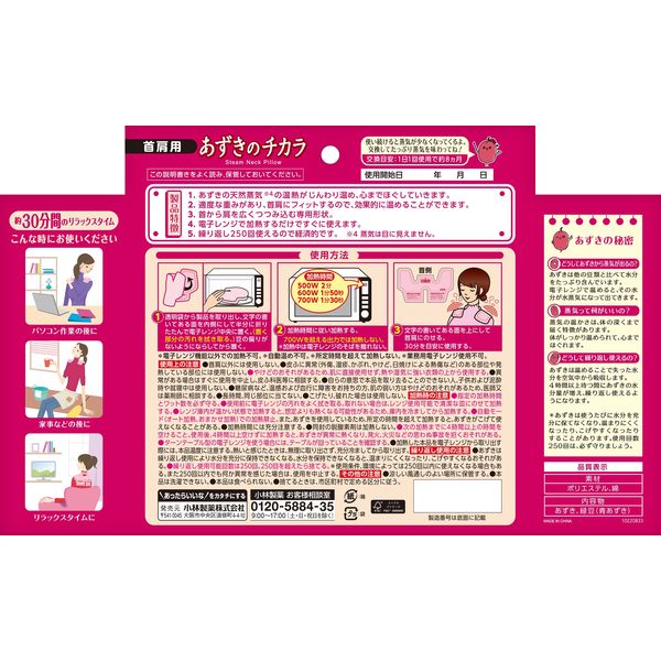あずきのチカラ 首肩用 レンジでチンするだけ くり返し使える 100%あずきの天然蒸気 ピンク 1個 小林製薬 - アスクル。