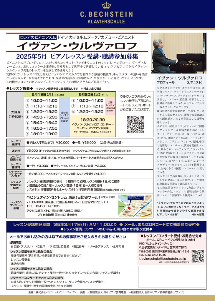 2025年5月 ドイツ カッセルムジークアカデミー・ピアニスト イヴァン・ウルヴァロフ ピアノレッスン - ベヒシュタインジャパン公式サイト。
