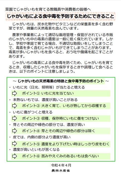 じゃがいもによる食中毒を予防するために:農林水産省。