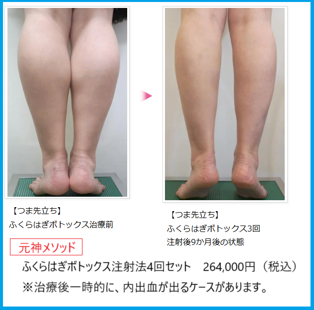 両下腿 ふくらはぎ ボツリヌストキシン東京美容外科。