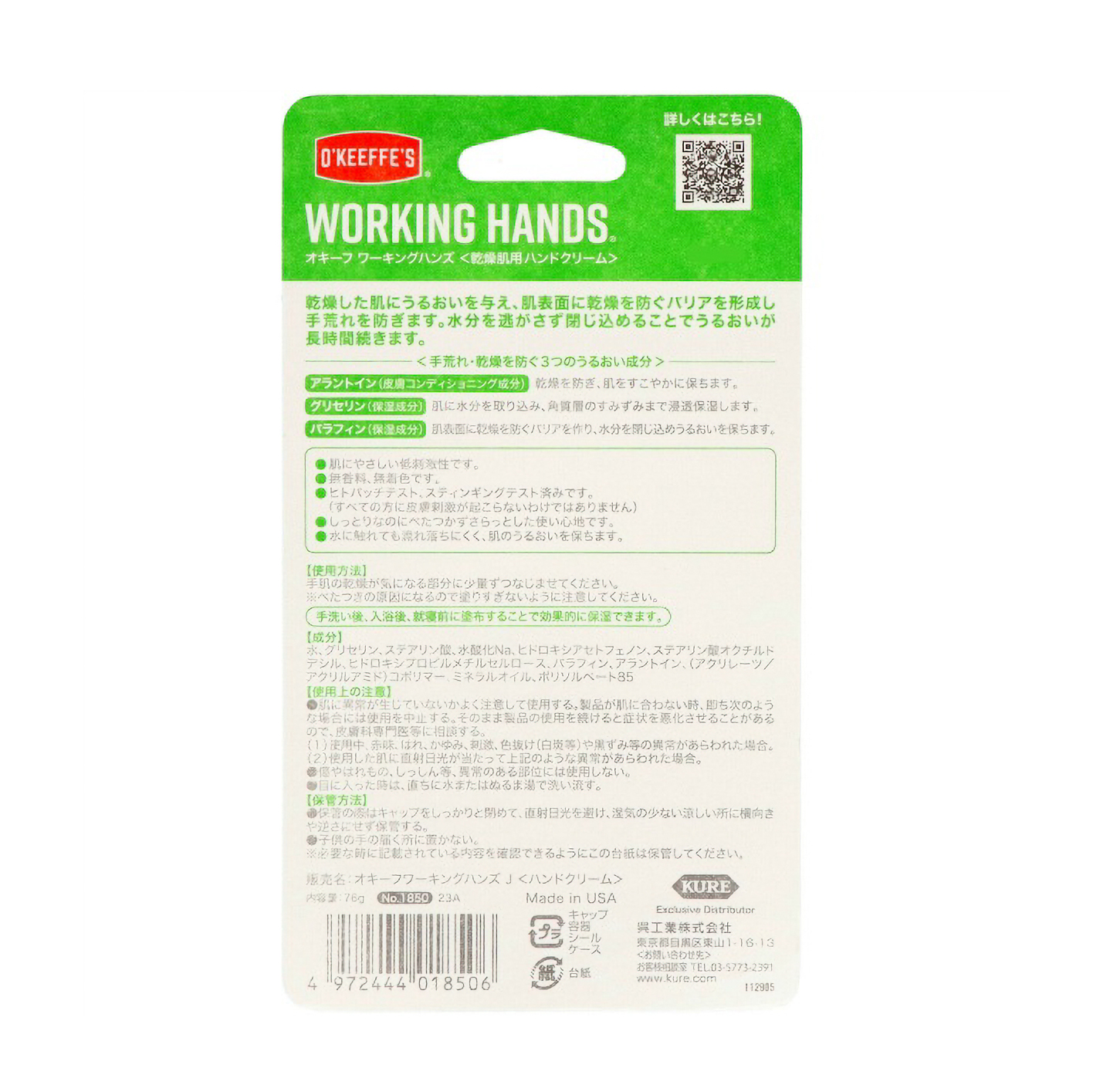 KURE オキーフ ハンドクリーム ワーキングハンズ 76g の通販ホームセンター コメリドットコム。