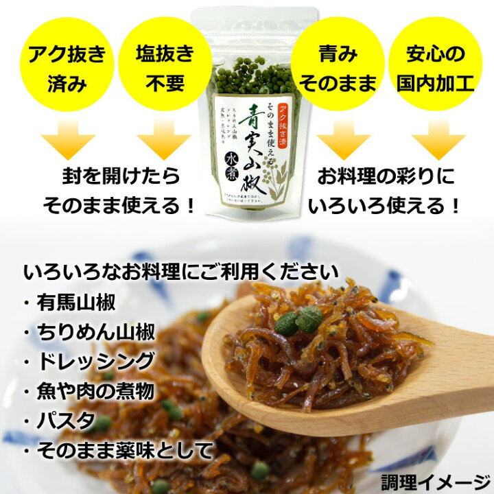楽天市場 送料無料 青実山椒 山椒の実 実山椒 水煮 80g×5パック アク抜き済み 国内加工品 山椒 青山椒 ちりめん山椒 ドレッシング 薬味まとめ買い : 讃岐うまいもん処 大森屋。