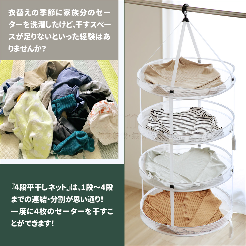 連結できる!折り畳める!4段平干しネットA-77624アーネスト株式会社アイデア雑貨商品。