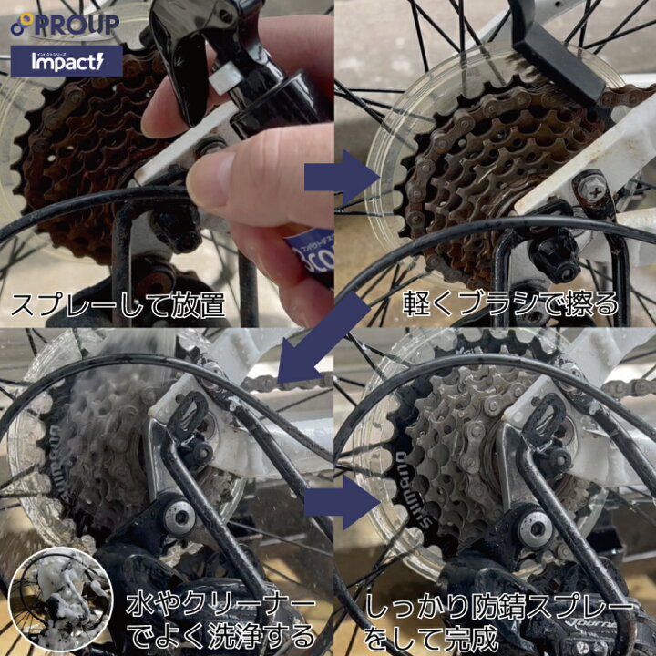 超強力 サビ取り サビ落とし プロも唖然 サビ取り剤 スプレープロ用の威力鉄 チェーン 自転車 バイク もらいサビ インパクトデスケーラーハード 150ml : IMPACTシリーズ Yahoo!店 - 通販 - Yahoo!ショッピング。