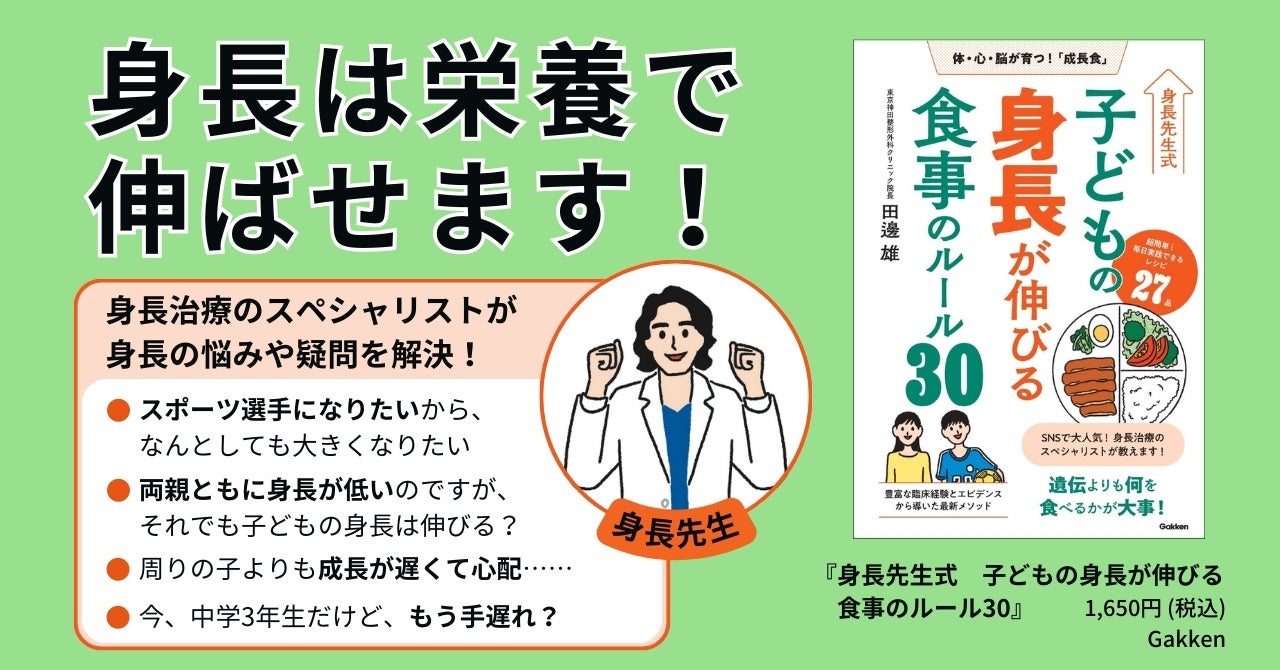 身長先生が解決! 子どもの身長が伸びる食べ物&食べ方がわかる「最新メソッド本」が発売株 Gakken公式ブログ。