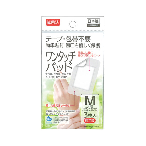 絆創膏 ばんそうこう 滅菌済ワンタッチパッド 3枚入個包装 M 330481。