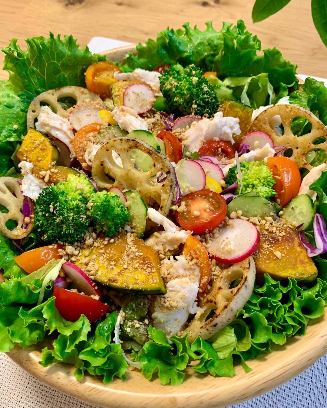 身体も心も元気になれるプレート作り💪 おうちごはん パワーサラダ ダイエット サラダチキン サラダ 美容 cooking food japan salad。
