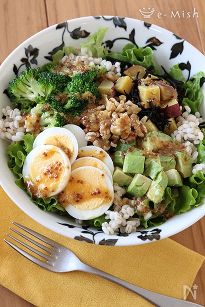 ひと皿でタンパク質も食物繊維もたっぷり!雑穀を使ったパワーサラダみんな一緒に食べよう。