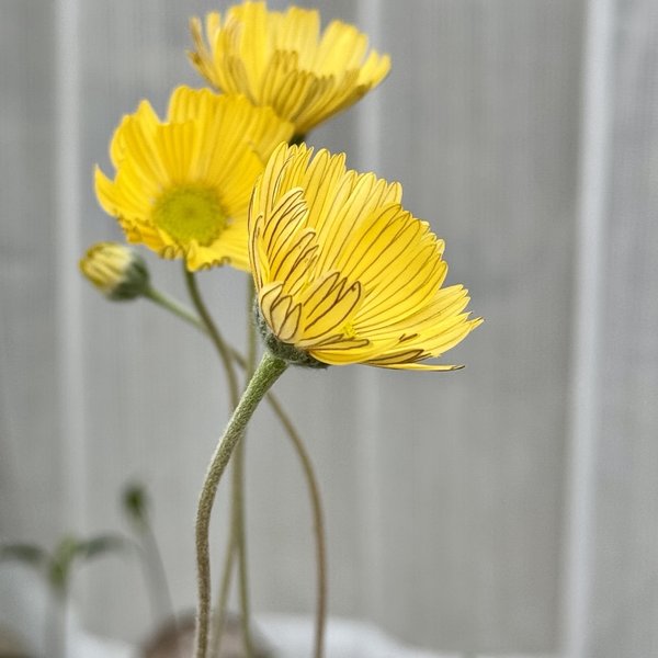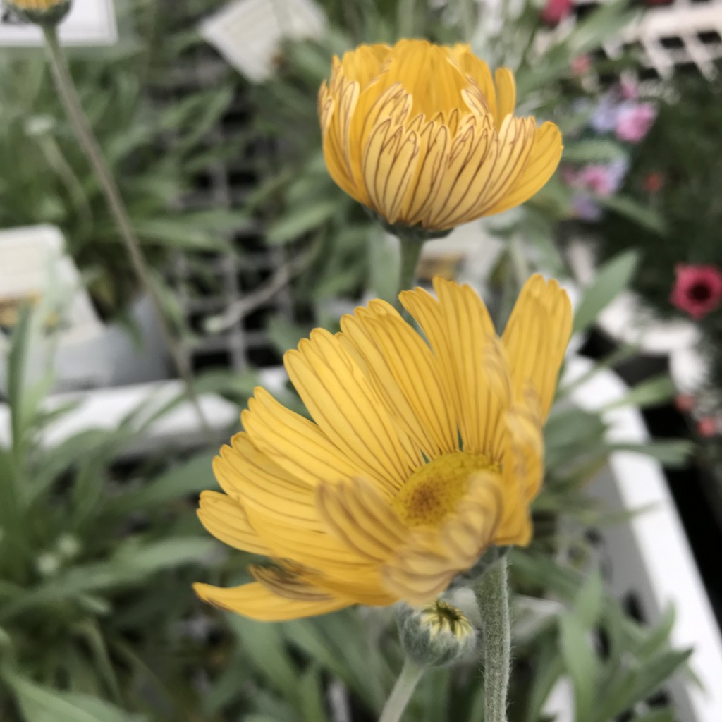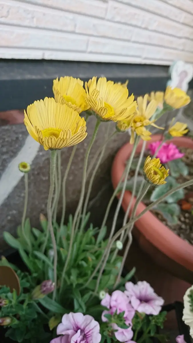 やっぱり春はイエローフラワーかな‼︎ 寒さにたえ暖かくなると可愛い💕花が 咲ほこりますね ^^ヒメノキシス イエローファンタジー 大好きな ヒメノキシス 透き通るように美しいイエローファンタジー 茶色のストライプの縞模様がオシャレでとっても可愛い🩷シルバーリーフ。