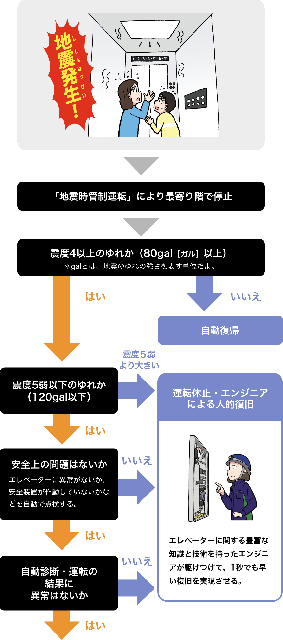 地震対策オプション 機能向上:エレベーター東芝エレベータ。